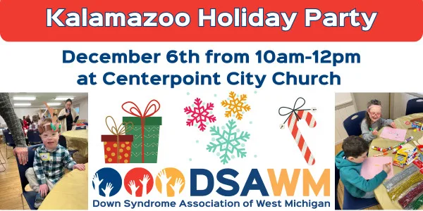Mark your calendars! Our DSAWM Kalamazoo Holiday Party will be hosted on Saturday, December 6th from 10:00 am to 12:00 pm at a NEW LOCATION: Centerpoint City Church (326 W Cork St Kalamazoo, MI 49001)! This is a free gathering for all of our members to come and celebrate the holiday season! There will be holiday activities, light refreshments, and pictures with Santa.