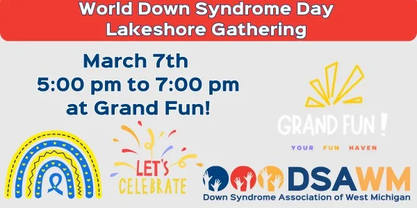 DSAWM is excited to host a Lakeshore gathering at Grand Fun in Grand Haven on March 7th from 5:00–7:00pm! Come enjoy bowling, arcade games, pizza, and pop while spending time with other DSAWM families and celebrating World Down Syndrome Day. DSAWM will cover the cost of games, bowling, and food. All families are welcome so we hope you’ll join us for a great night out!